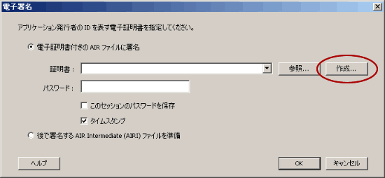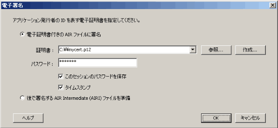 AIR では、セキュリティの観点から必ず電子署名を行う必要があります。