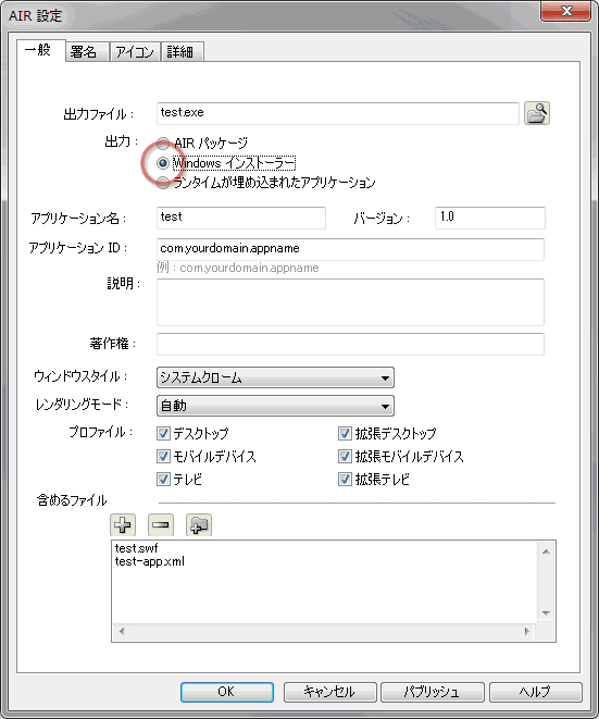 Adobe AIR インストーラを作成する