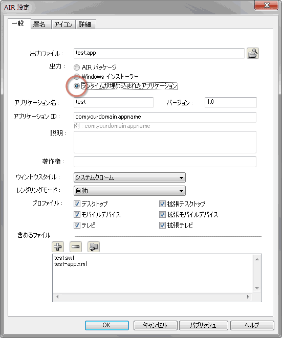 ■AIR アプリケーションを「Adobe AIR パッケージ」として配布する