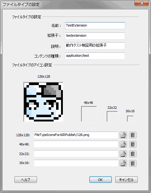// AIR アプリケーションに、"*.testextension" ファイルを関連付ける