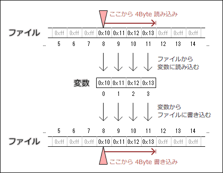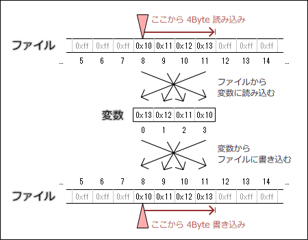 リトルエンディアン形式で読み込む (注意:ファイル操作を行います!! )