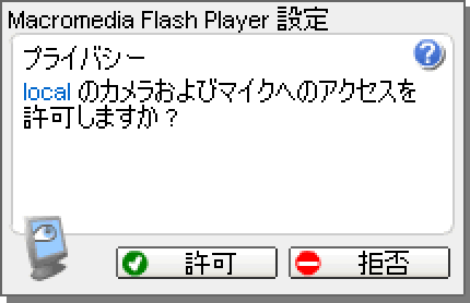 Flash Player の設定画面から、カメラへのアクセスを設定することができます。