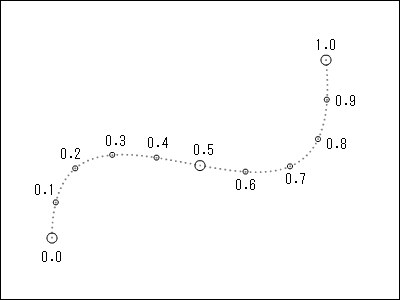 曲線の開始を 0.0 、曲線の終了を 1.0 として、