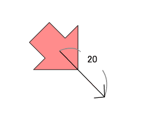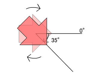 自分の移動量を(spd_x ,spd_y )とします。 移動量からどの角度に進んでいるかを計算します。 x方向とy方向の値から角度を求める rad = Math.atan2(spd_y, spd_x); _rotation = rad * 180 / Math.PI; rad = Math.atan2(y移動量, x移動量); 角度 = rad * 180 / Math.PI;