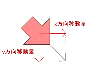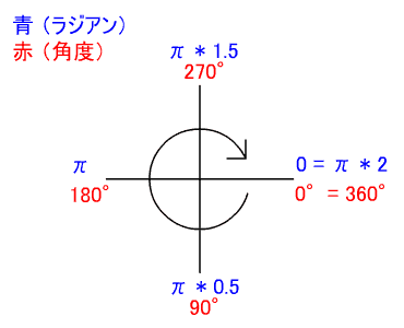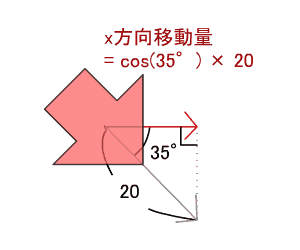 x軸方向移動量 = Math.cos( 角度 * Math.PI / 180 ) * 距離