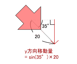 y軸方向移動量 = Math.sin( 角度 * Math.PI / 180 ) * 距離