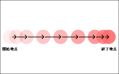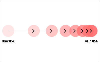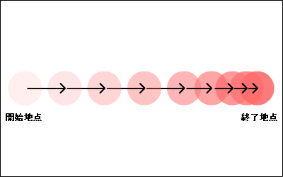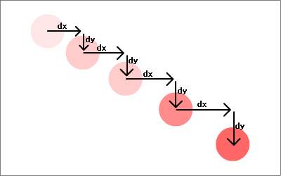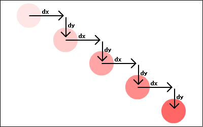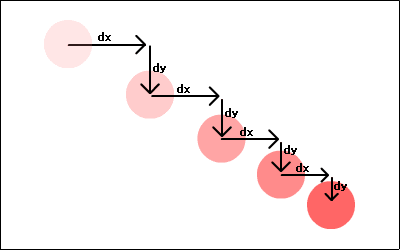 速度 (dx,dy) を少しずつ増加させながら移動させます