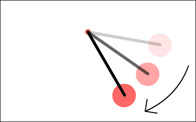 Flash MX 以降での記述例です。ムービークリップ mc に振り子運動を行います。