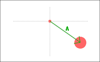 まず、支点から現在の重りまでのベクトルを算出します。これをベクトルAとします。