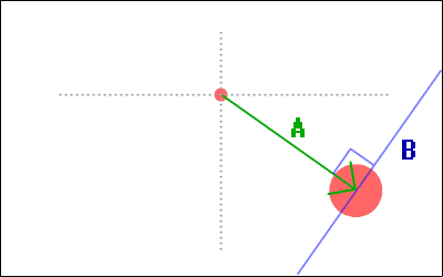 重りの座標を通過して、ベクトルAを90度回転させた方向に伸びる線を線Bとします。