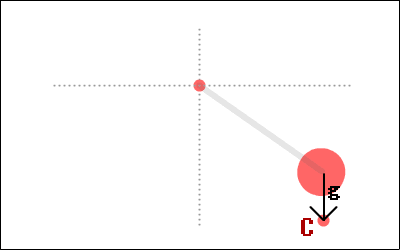 重りの座標に重力移動量を加算してできる座標を座標Cとします。