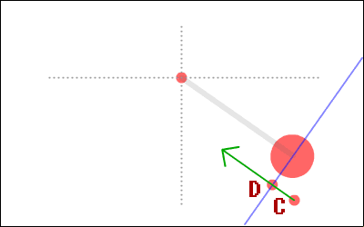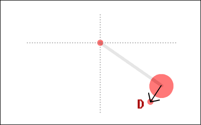 重りの座標から座標Dまでのベクトルが、振り子運動を発生させるベクトルとなります。