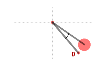 このベクトルを角度に変換します。現在の角度とこの角度の差分を角移動量に足しこみます。