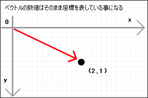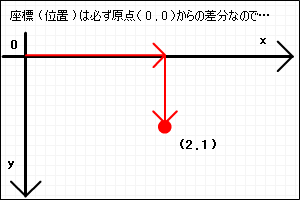 実際にベクトルを使った操作を考えてみましょう。まず自分の座標を表す位置ベクトルと、自分の移動量を表す移動ベクトルを作りましょう。