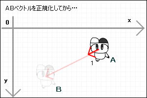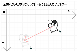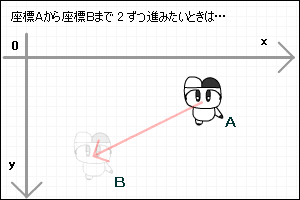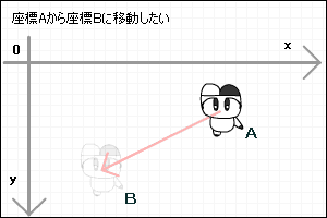 さてキャラクターを目的地まで移動させたいと思います。自分の立っている座標をAとします。目的地の座標をBとします。
