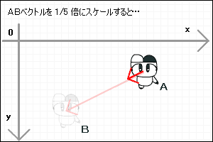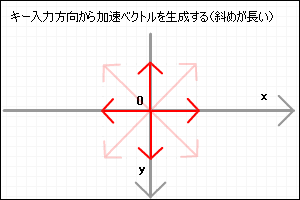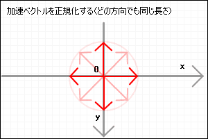 さらに好きな値でスケーリングします。このベクトルを加速ベクトルとします。
