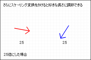 長さが 1 になるということは、この後スケーリング変換をかけると好きな長さに変換する事ができます。