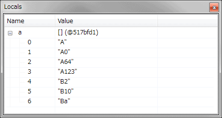 データを格納してから、挿入や切除などの操作を行うと、番地が変動する事があります。