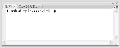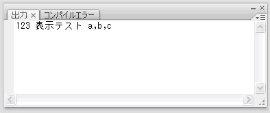 変数の中身を出力ウィンドウに表示するには trace() 関数を使用します。引数に数値や文字列をセットします。