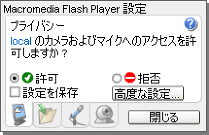 Flash Player の設定画面から、マイクへのアクセスを設定することができます。