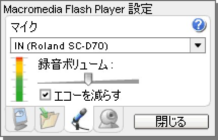Flash Player の設定画面から、マイクの種類を選択することができます。