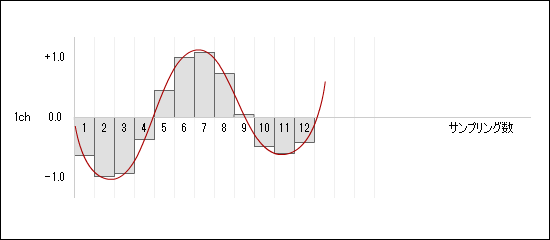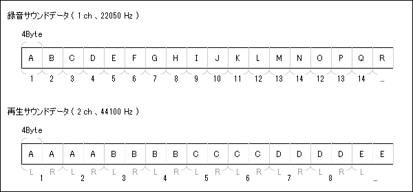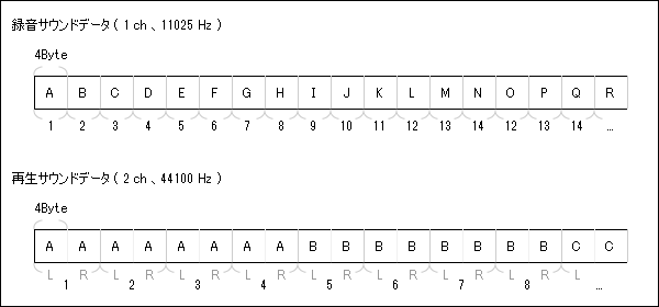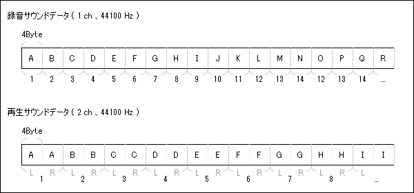 サウンドバッファには、モノラル(1channel)としてデータが蓄積されます。