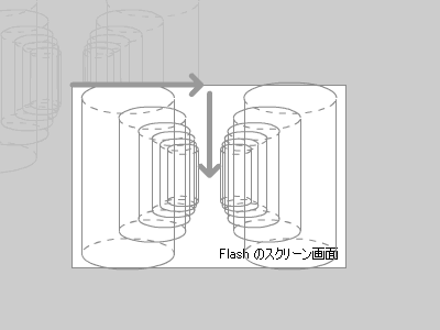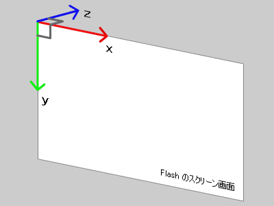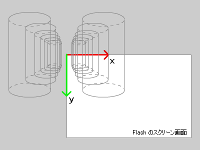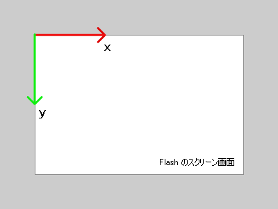 Flash の画面は右に x 軸、下に y 軸が伸びる2次元座標です。