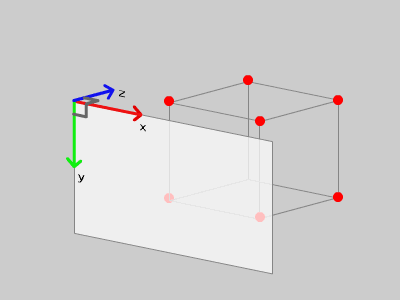スクリーン (z = 0) から遠ざかるほど z 座標は大きくなります。