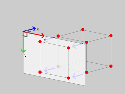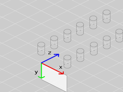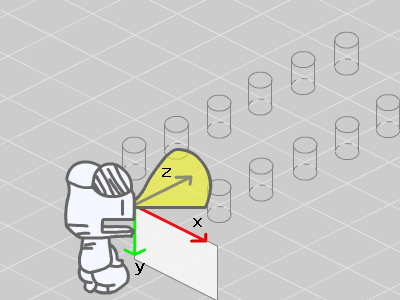 この2次元座標上の奥方向に z 軸を追加して3次元空間としてみます。