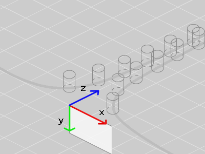 3Dの空間に視点(カメラ)があるとしたら、原点に配置されz方向を向いていると考える事ができます。