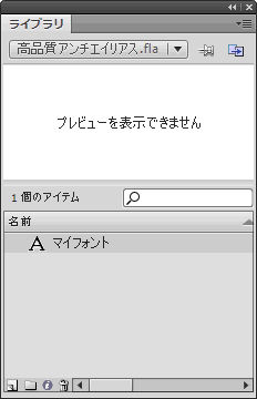 高品質アンチエイリアスレンダリングを使用するには、swf ファイルにフォントデータを埋め込む必要があります。