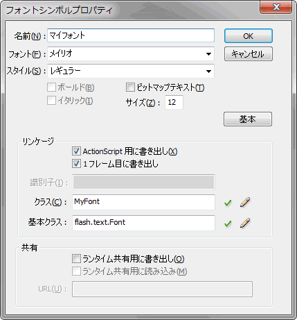 ■swf ファイルにフォントデータを埋め込む
