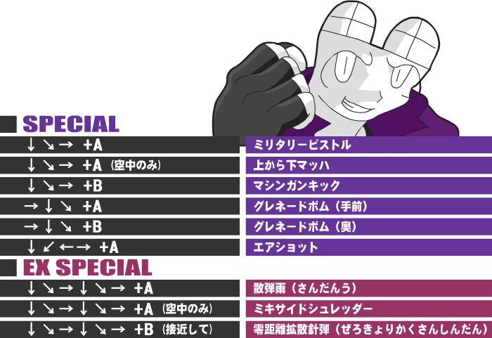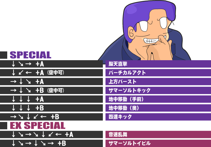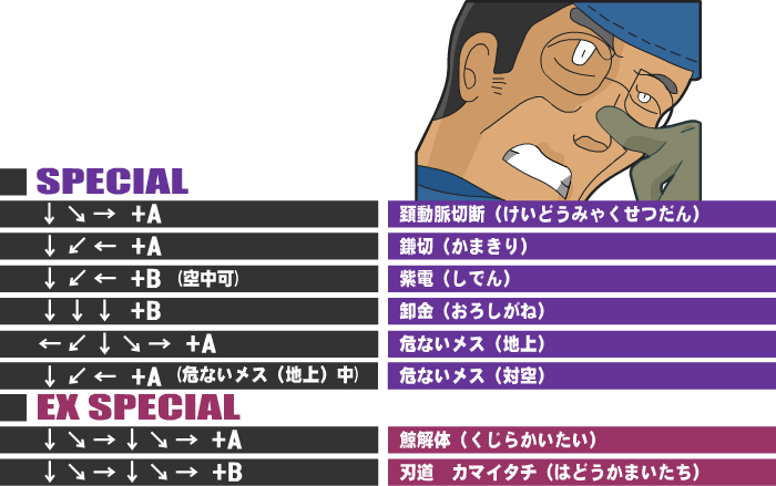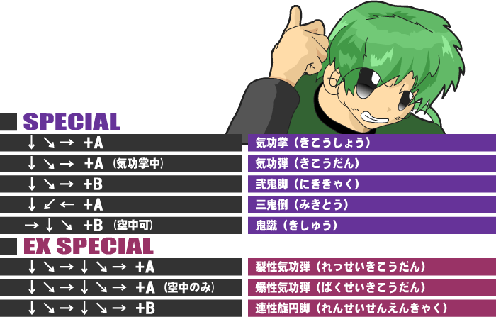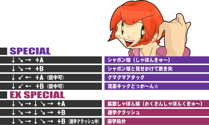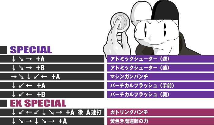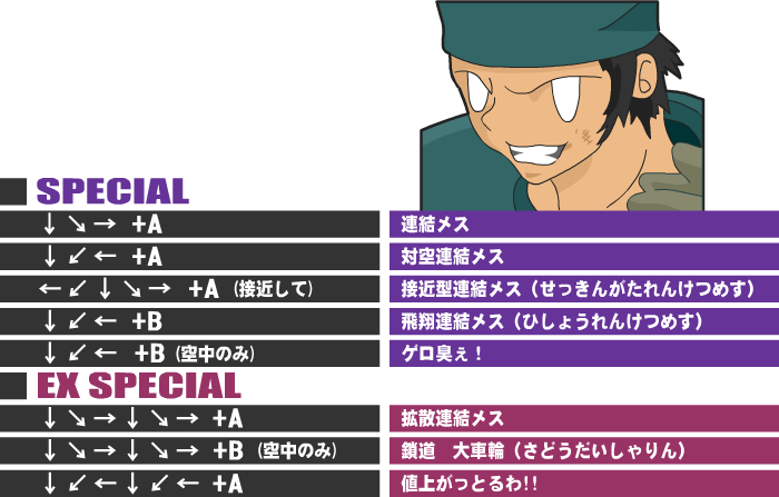 6チェーン対応キャラクターです。上級者向けです。操作が複雑ですが、多彩なコンビネーションが出せます。