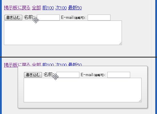 書き込みフォーム付近をマウスオーバーすると、移動アイコンに変化します。