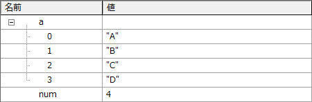 | 第01引数 | * | 0 番地に格納したいデータを指定。(第01引数に数値だけ指定すると配列の初期サイズの設定となる) |