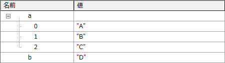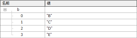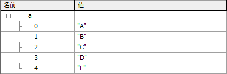 角括弧 [ ] の中に、カンマ , で区切って、データを順番に指定します。