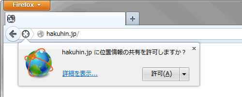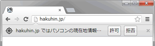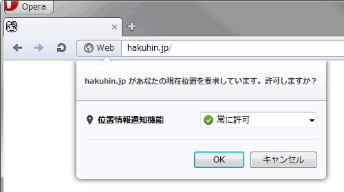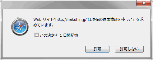 位置情報取得用のメソッドを実行すると、以下の様な確認のポップアップが表示されます。