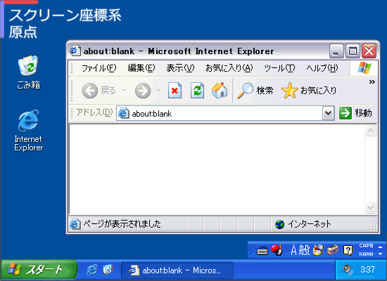 スクリーン座標系とは、モニタ(デスクトップ)全体の、左上を原点とした座標系です。