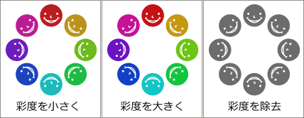 [RGB値の回転]は、色相が色相環において120度回転した値になります。[ネガ]ではRGB値が反転します。