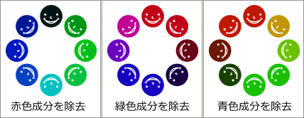 R(赤色)、G(緑色)、B(青色)のそれぞれの数値を除去(ゼロに)します。