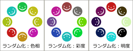 [色相][彩度][明度]のうち、チェックを付けた項目をランダムに変更します。複数選択も可能です。
