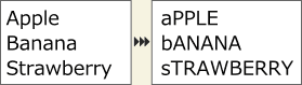 メニューバーの[エクステンション]メニューより、[テキスト]-[大文字小文字の入れ替え]を選択すると、テキストの大文字小文字を入れ替えます。