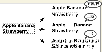 テキストを、[行]または、[単語]または、[文字]単位に分割します。