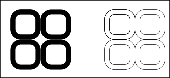 例えば、10pxの線幅を指定した下記のオブジェクトに、@[仮想境界枠]、A[幾何学境界枠]、Bストロークをパスに変換後の3つのバージョンででタイリングしてみると次のようになりました。