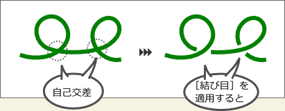 パスが自己交差している箇所で、片方のパスの一部を非表示にします。