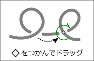 [スイッチャー]は1つのパスに1つだけしか表示されません。別の交点を編集したい時は、中央のひし形をつかんで任意の交点へドラッグします。