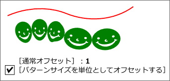 数値の単位は、通常はpixelですが、[⑦ パターンサイズを単位としてオフセットする]をONにすると、パターン1つ分のサイズが1単位になります。