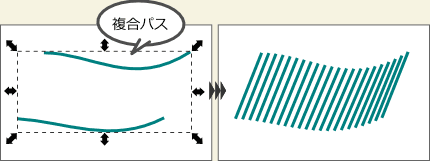 [ステッチパス]というコントロール用のパスを変形させると、追加されたサブパスも変形します。