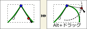 ハンドルの長さを変えずに回転だけしたいとき、[Alt]を押しながら回転すると、ハンドルの長さを固定できます。