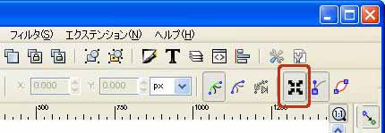 通常は全選択ノードの中心点が、変形/回転の基準点になりますが、ノードの上にマウスを置いておくと、そのノードの位置が基準点になります。基準点に使うノードは、別オブジェクトのノードでも可能です。